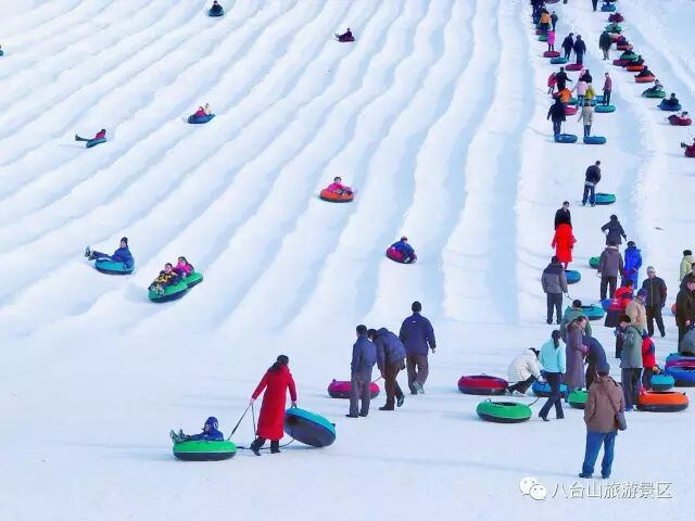 八台山滑雪场,处于景区内第七台(观音圣泉旁)最高处海拔2200米,占地面积近6000平方,最大长度接近140米,坡度在20%一8%左右,一期建有初级道 雪圈道及戏雪区,二期建成初、中、高级滑雪道5条(雪道面积达到三万平米),引进进口造雪机数台,可24小时不间断人工造雪,适合各种滑雪者爱好者冬季滑雪游玩体验,本滑雪场建成后能够承载300-2000人同时滑雪!