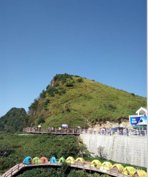 小编去的时候是10月国庆周,出行的车辆较多,绕过山路“N”到弯才到达景区,然后排队买票1小时,检票排队1小时,排队坐观光车40分钟,已经到下午13:00,观光车一咕噜把我们直接送到第七台。18公里的公路盘旋而上,沿路的是两排枫树,这个时节,枫叶还没那么耀眼,还只是绿中泛黄,不骄不躁的随风而动着。(ps:节假日是景区的高峰期,如果延误了行程大家也要保持愉快的心情耐心等待或是及时改变行程)景区导览图